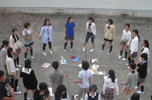 wa.jpg4階の職員室で仕事をしていたら、かわいい歌声が聞こえてきたので、窓の外を見てみると、1号館3階の屋上でになって歌っている音中合唱部のメンバーたちが!