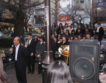 市長のあいさつ合唱部は、12月11日(日)に国立駅南口 スターバックス前にて行われた「クリスマスイルミネーション点灯式」に参加しました。